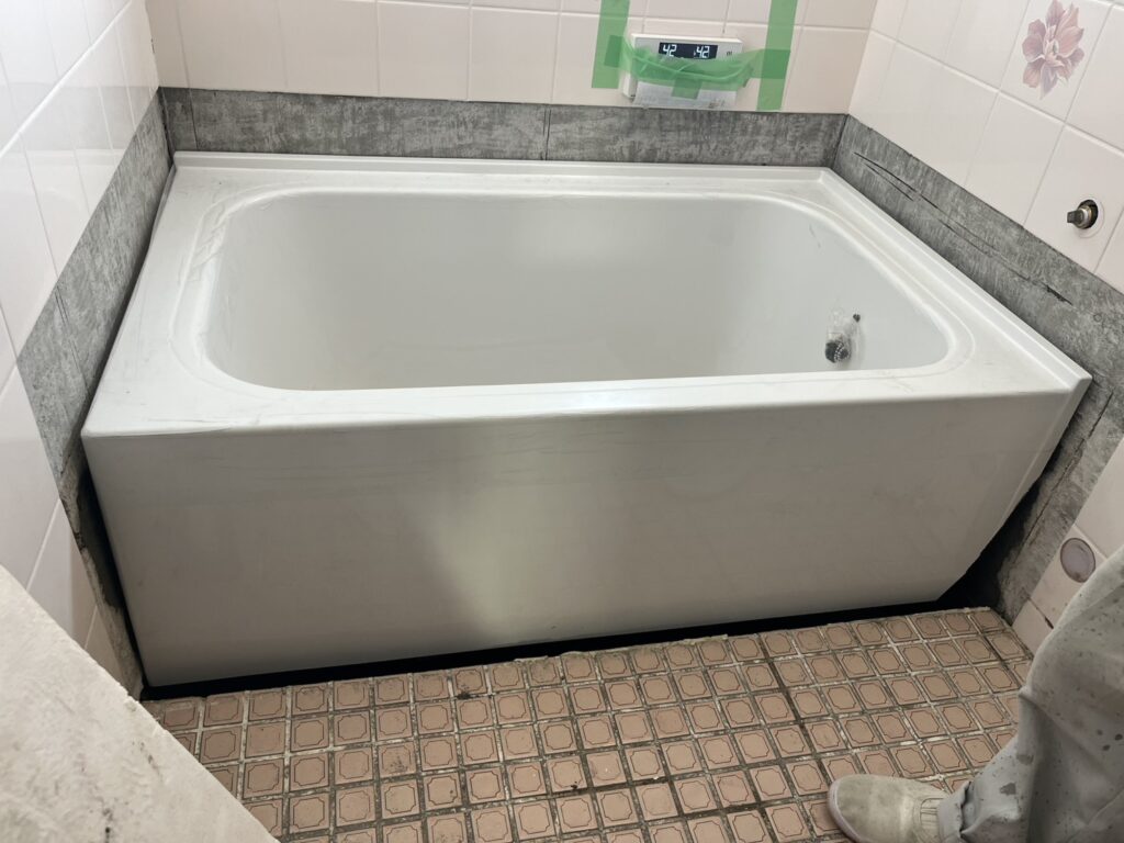 先日、村松さんと一緒に浴槽の備え付けをしてまいりました